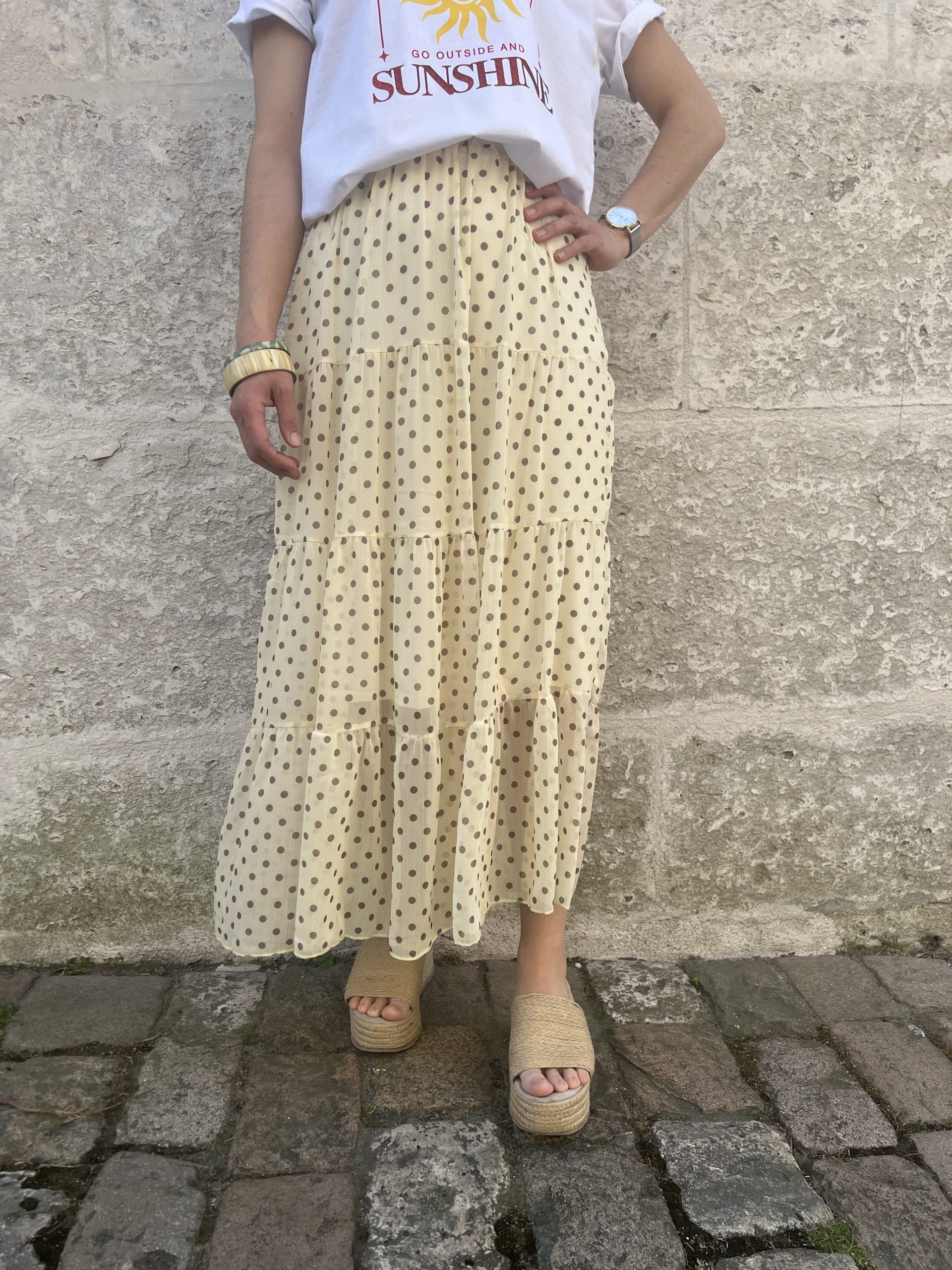 Jupe longue à pois : la grande tendance de la saison.