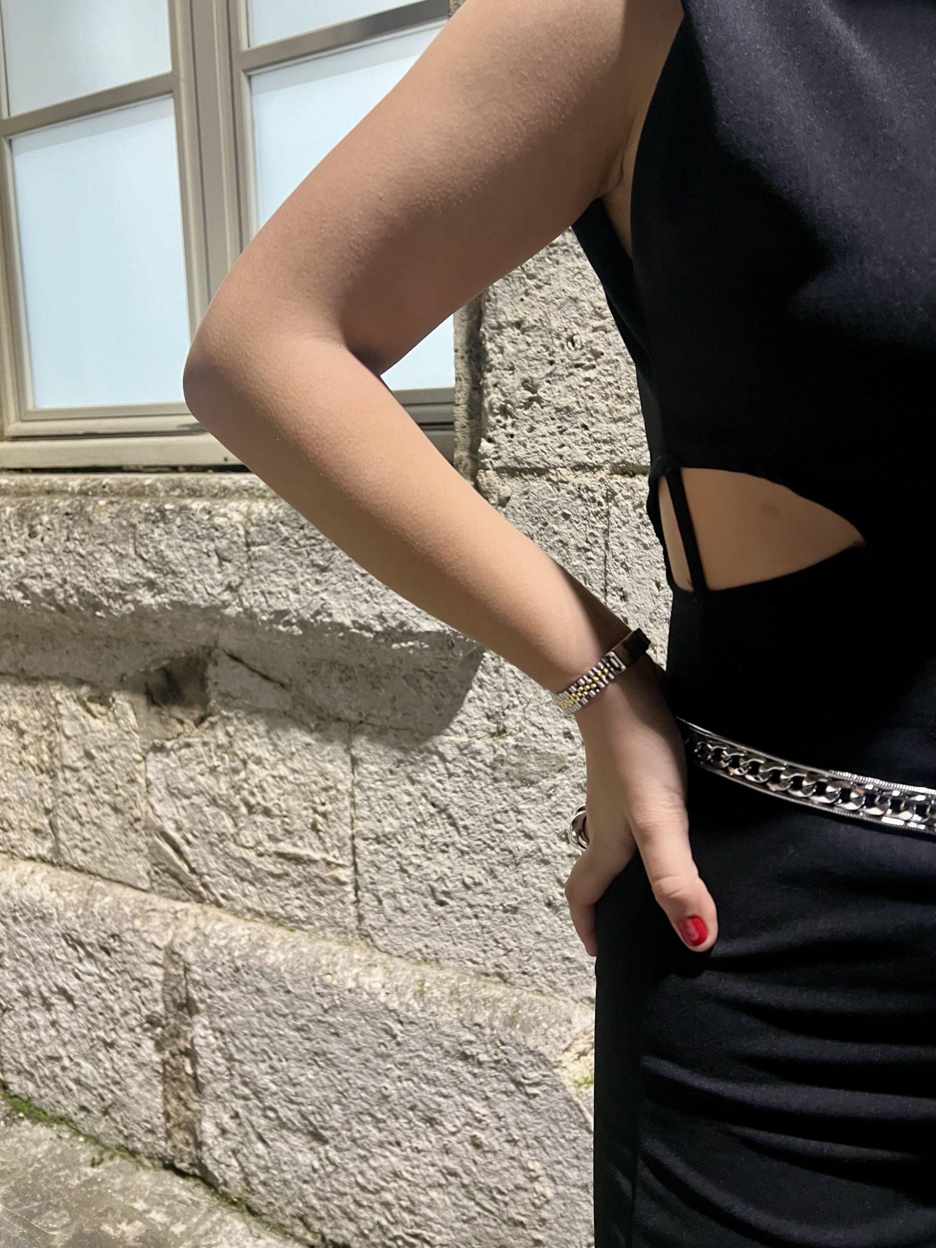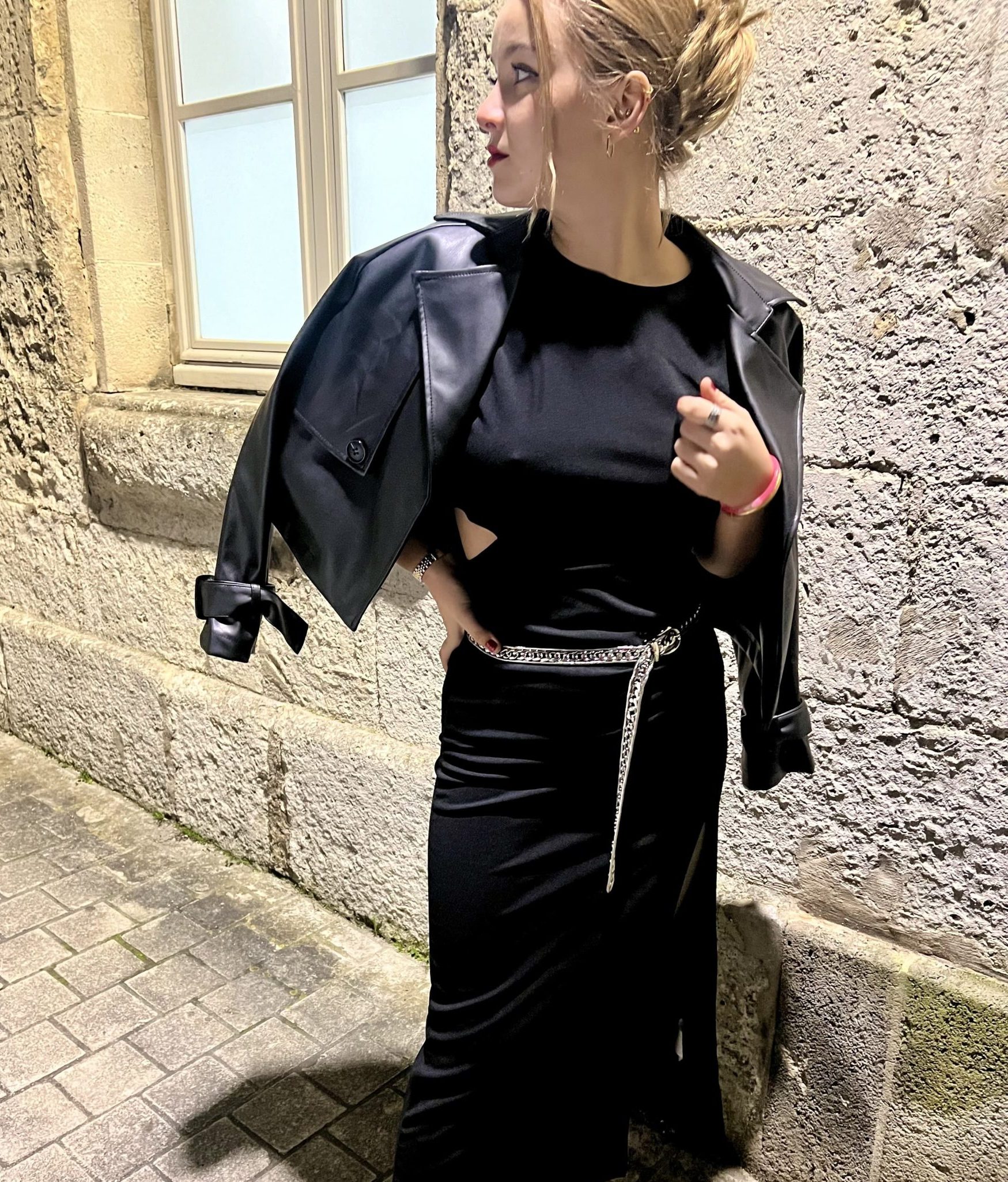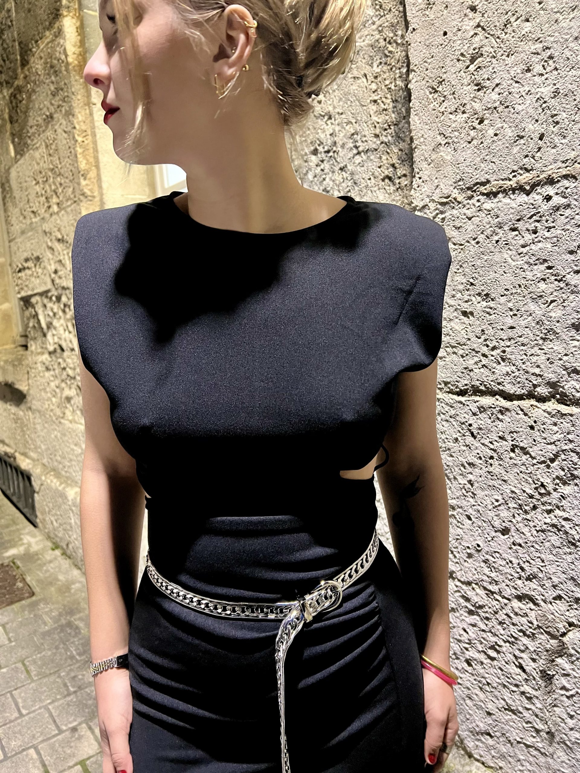 Elle est doublée drapée, détail ouvert qui donne du chic et à épaulettes.